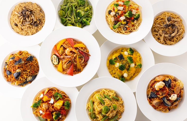 そして、専属のフレンチ、イタリアンの腕利きシェフ達がそれまでの経験を結集して最初に生み出したのが、「冷凍なのにアルデンテ食感の、極上パスタとリゾット」。
