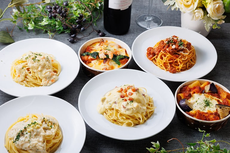 「濃厚ボロネーゼデミグラス仕立て」や「きのこの濃厚ポルチーニリゾット」などの通年販売している定番人気商品の他、シーズンごとに登場する限定のメニューもおすすめです。
